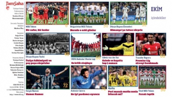 Ayrıca, "Dünya Kupası Elemeleri: Almanya'ya tatsız sürpriz", "Dünya Kupası Tarihi-2: İtalya hâkimiyeti ve peş peşe sürprizler", "Transfer Raporu: Premier Lig zirveyi bırakmadı", "Edwin van der Sar: Kalede ve hayatta hep 1 numara", "Kadın Millî Takımı: En kritik virajdayız", "Antonio Careca: En iyi yardımcı oyuncu", "Mjallby: Peri masalı mutlu sonla bitecek mi?", "Vamos Ramos", "Ümit Millî Takım: Fırsatı teptik", "İsmail Gökçek: Modern kölelik" dosyaları ile TamSaha'nın 251. sayısında da futbol kültürünün değişik konularıyla farklı bir içerik yer alıyor.